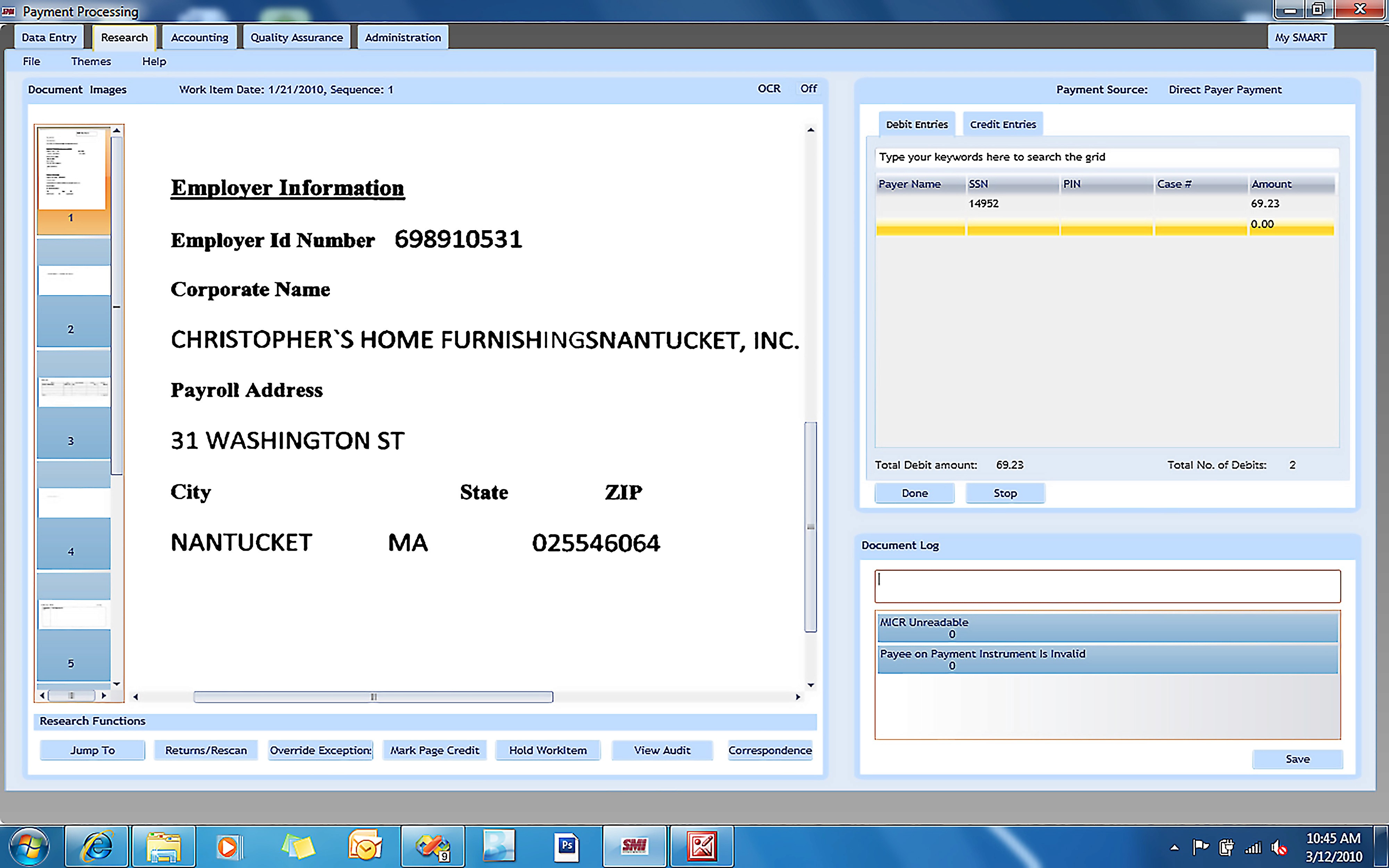 Employer is Khumbu Information Systems. Client is SMI, they work for the state (in US), for a process called Child Support.