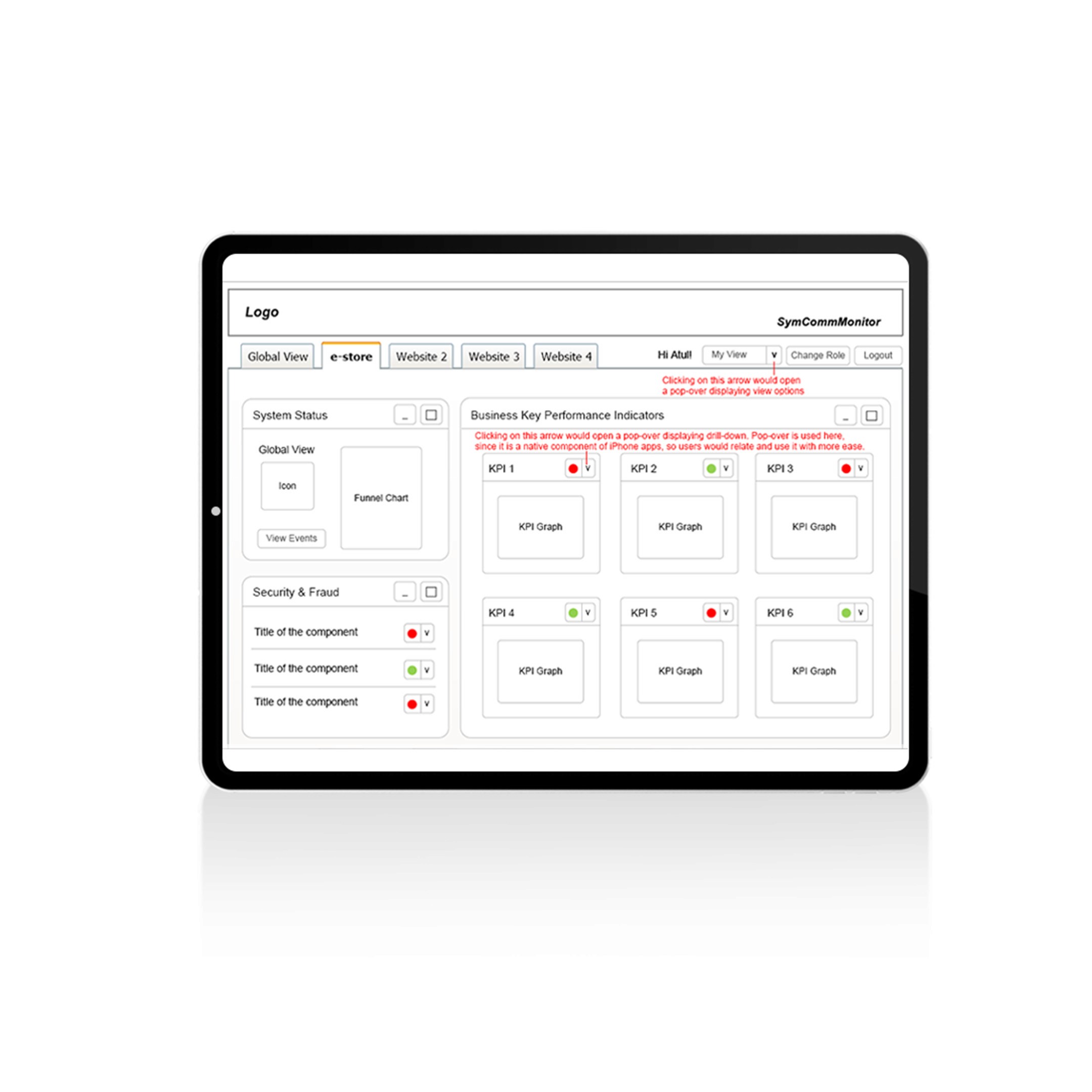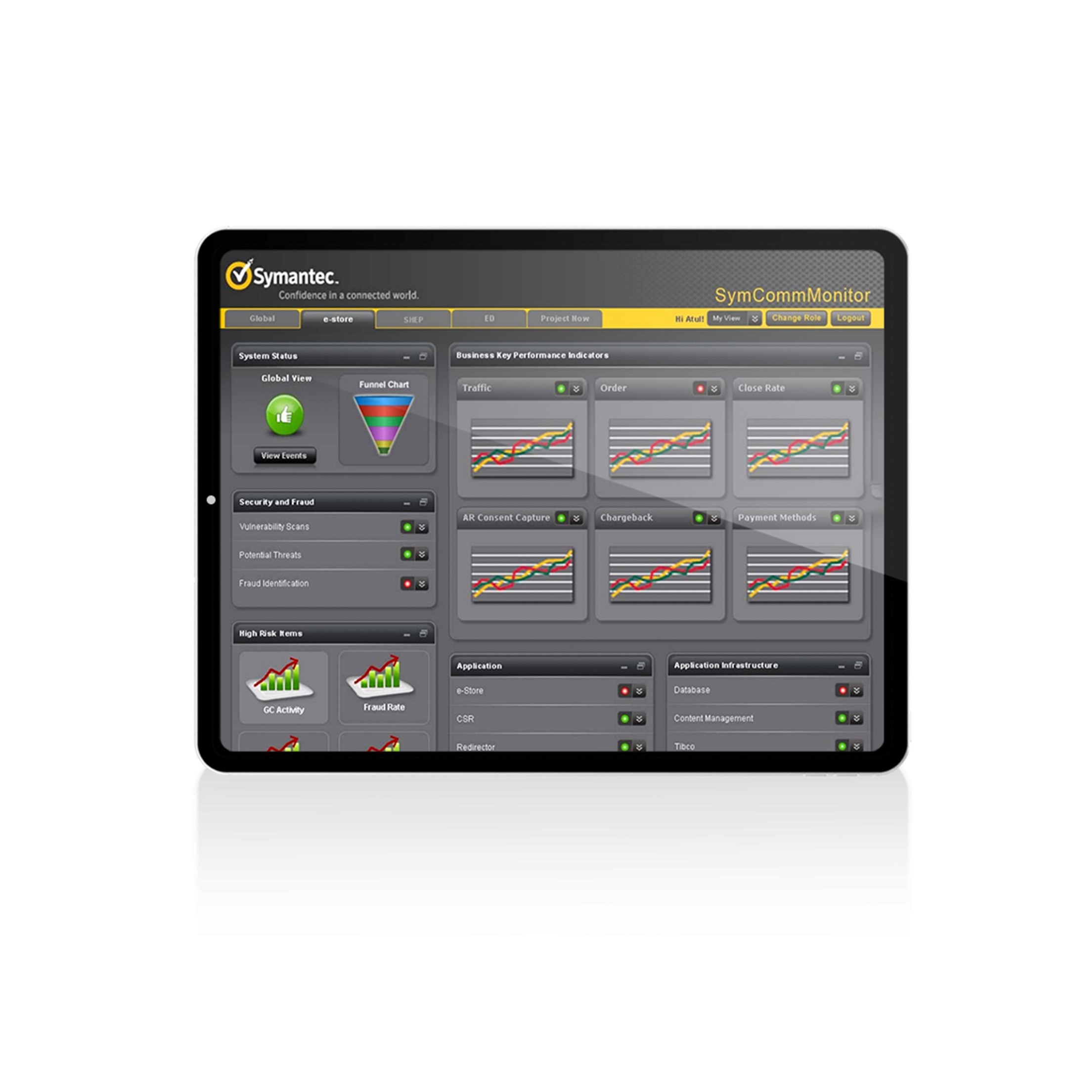“E-store” is the e-commerce website of Symantec which sells various products of Symantec. The application SymCommMonitor monitors and displays the health status of various components of e-store. This product is a web based application for monitoring the health of an e-commerce system, optimized for iPad. Client is Symantec.