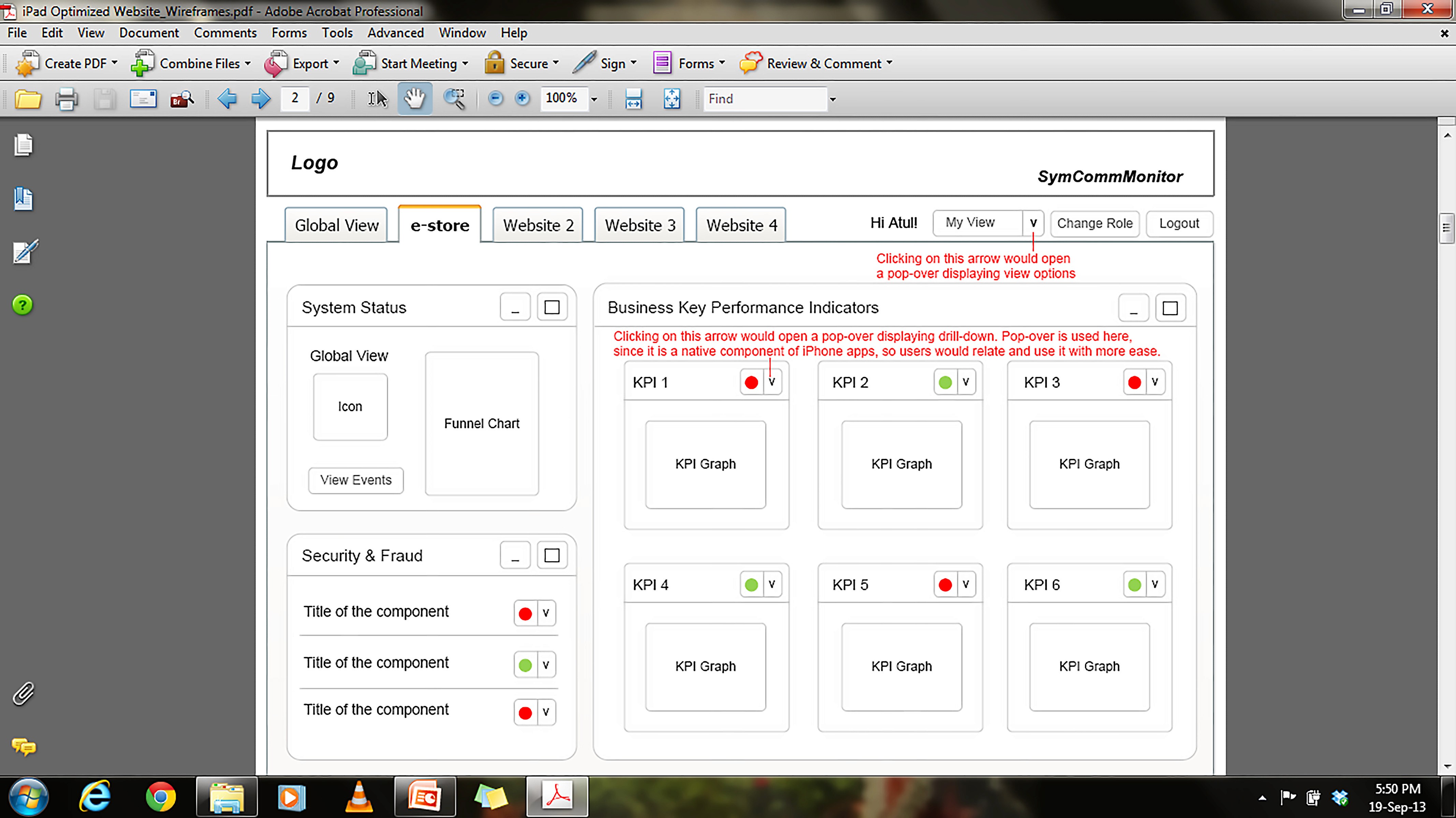 The work involved redesigning the existing portal. I worked as an individual contributor. The scope of work was to provide high level recommendations for incorporating all the features of web application, to be optimized for iPad. This project was good challenge in the sense that I had to come up with wireframes within 5 days from date of commencement and this was my first iPad related project.
